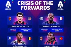 仍无亿元!意甲身价更新:巴斯托尼跌至7000万 霍伊伦涨至5000万