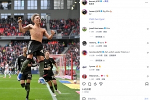 卡尔也在赛后通过社媒晒出自己进球后的脱衣庆祝照,并配文:“重大的胜利💪🏼42”。