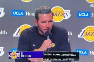 体育资讯4月10日讯 湖人客场挑战勇士,赛前主教练雷迪克接受采访,谈到球队近期的三连败。