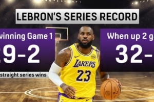 当1-0领先时,系列赛29胜2负(目前保持一波系列赛20连胜);